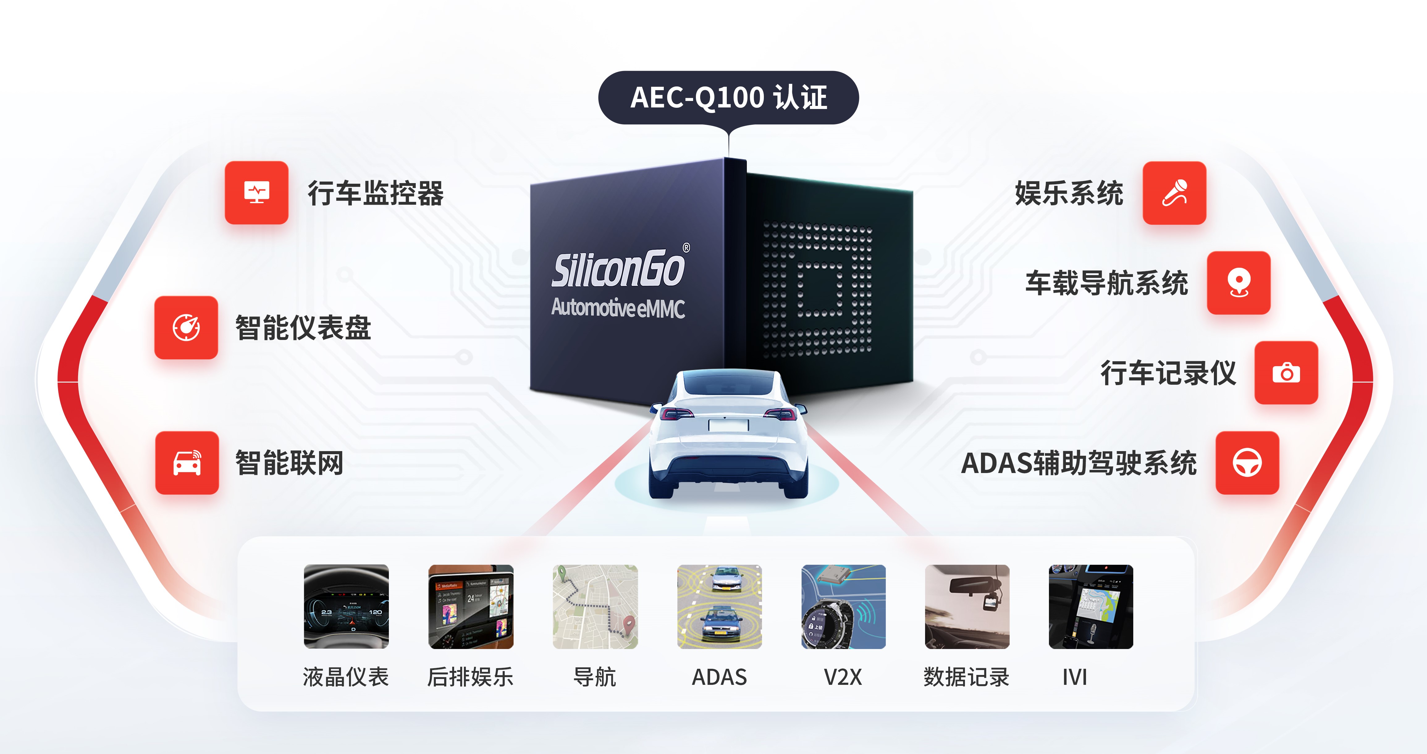 2021年,得一微電子的車規(guī)級存儲芯片eMMC正式“上車”,被廣泛應用于汽車的數(shù)字儀表、T-Box、ADAS、智能座艙、車載信息娛樂系統(tǒng)、事件記錄儀等系統(tǒng),并在東風、長安新能源、上汽大通、陜汽等主流汽車品牌中得到批量應用。
